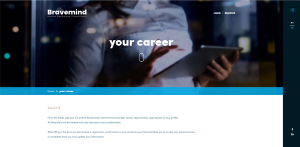 Bravemind于2006年在里斯本成立,旨在通過建立雙贏的關系提供差異化??的人力資源咨詢服務。公司網站整體色調采用淺藍色和設計元素搭配,既體現突出了公司的專業性有表現了公司的年輕、充滿活力和靈活的特點。