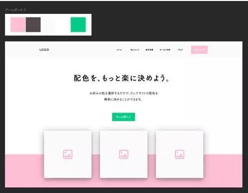 如果你想表現出更平靜的氛圍時可以使用這樣的配色。就算是相同顏色的配色版,應用的設計要素不同,給人的印象也就不同。