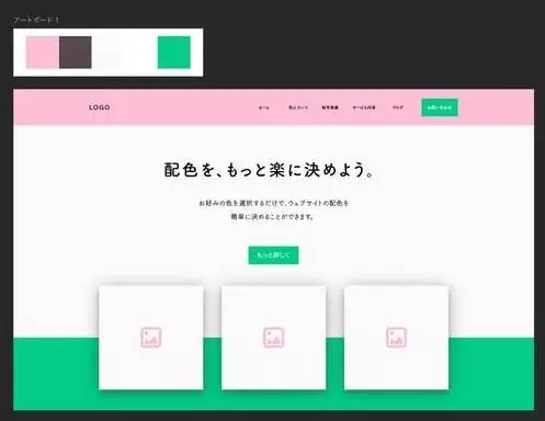 在Designspiration這可以選擇五種顏色相互組合、在形象更相符的作品中選擇合適的配色作為參考。舉個例子,在這里選擇淡藍色和粉紅色。
