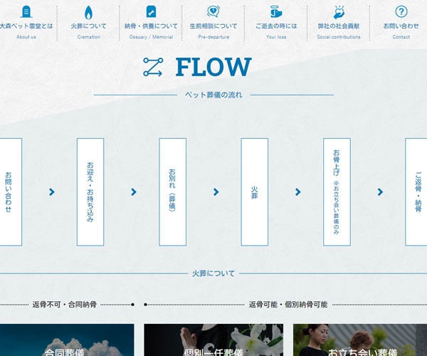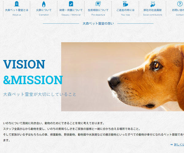 Petsougi是一家專門為寵物處理后事的公司,網(wǎng)站以藍(lán)色為主,精致的圖文排版與精心