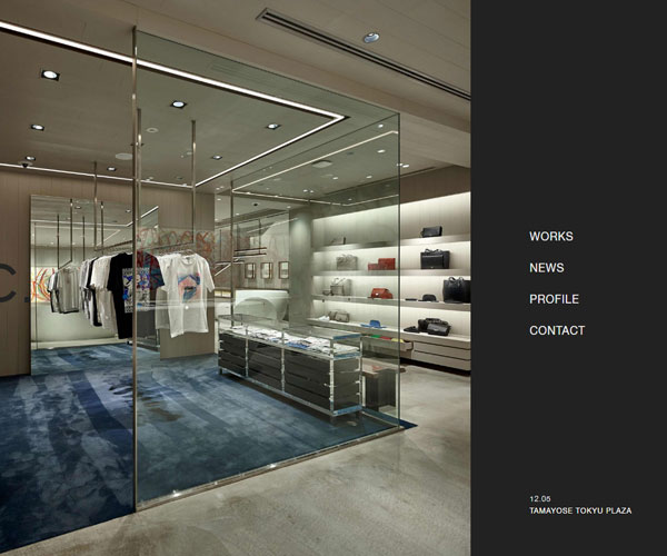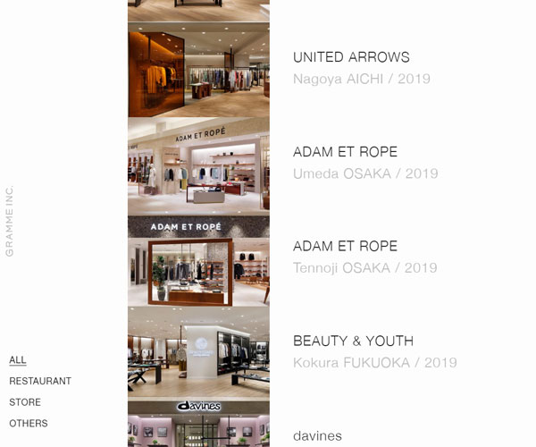 Gramme在多地開設(shè)精美的服飾店,網(wǎng)站的排版方式標新立異,左右固定的文字形式
