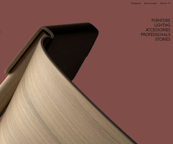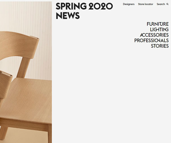 Muuto制作精美的木質椅子,網站以精心制作的3D模型與動畫開啟了整個網站高端的格調,